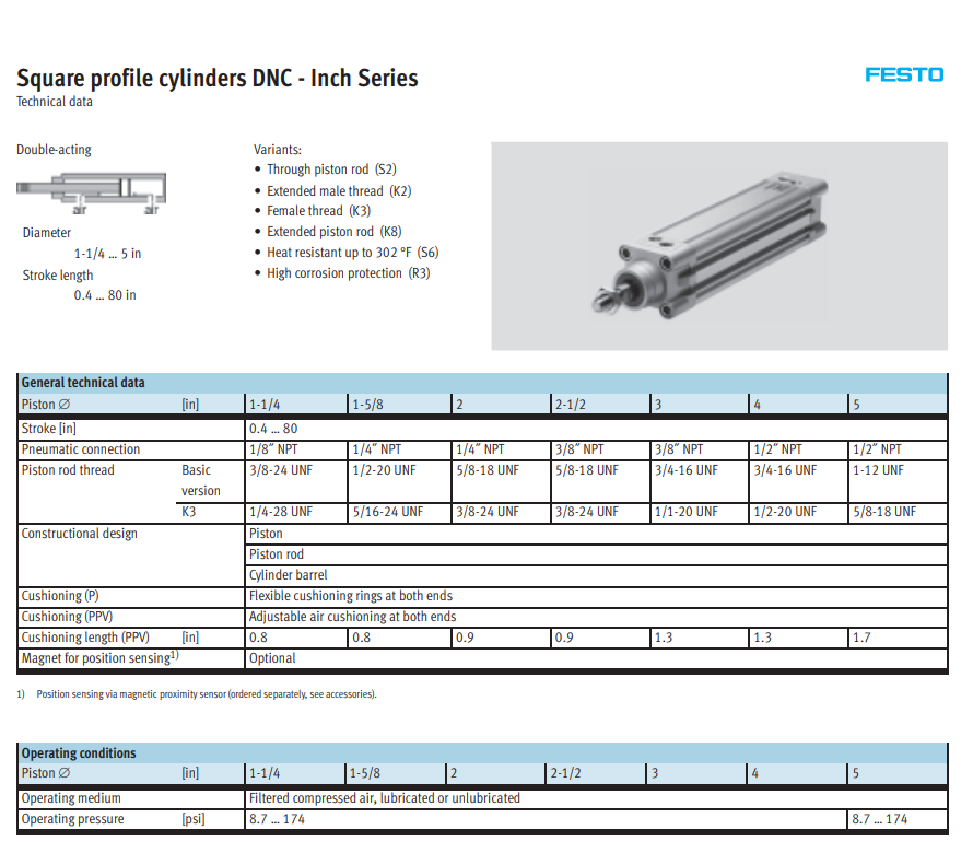 FESTO Air Cylinders DNC-40-25-PPV-A 163337 Pneumatic Cushioning With Position Sensing Cylinder